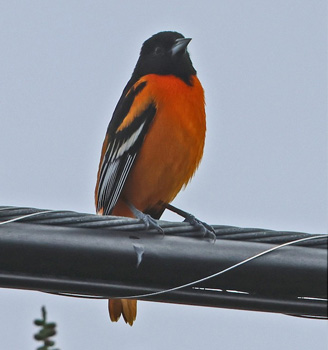 - male Baltimore Oriole along Hawthorne St., Monterey, present with female since 25 Oct (Marty Freeman) into 2026 (ph 24 Dec © Don Roberson). The same two were briefly present in fall 2024, so these adults were back for a 2d year, and have lingered longer this winter
