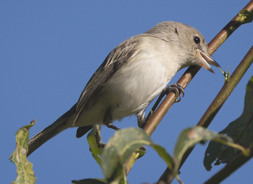 This wonderfully active little bird was a "Least" Bell's Vireo Vireo bellii pusillus, an endangered subspecies, now breeding only in southern California and in Baja California, Mexico. This subspecies is much grayer than the subspecies in Arizona and the East. It once had a few breeding pairs north to southern Monterey County, but none has been found since the 1990s. Thereafter, only a handful of vagrants have occurred in MTY. This Laguna Grande bird was the first "Least" Bell's Vireo for the Monterey Peninsula area. [There was an "eastern" Bell's Vireo at Pt. Pinos on 14-17 Oct 2018.]