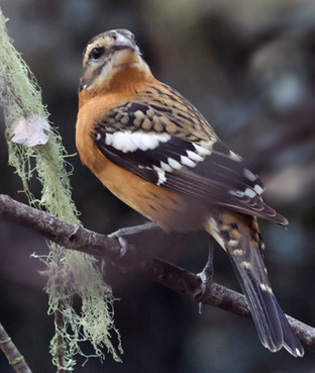 - imm male Black-headed Grosbeak in Pacific Grove yard (ph 20 Dec © Don Roberson), one of three in our yard from 23 Oct (this male), an imm female since 13 Nov (#2), and a 3d (19 Nov-15 Dec). This male and #2 were present into 2026
