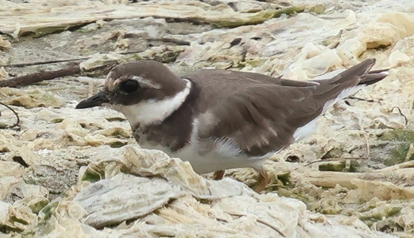 Despite the excellent set of waders from June through August, discussed below, the shorebird season would be crowned by yet another major rarity along Jetty Road in Moss Landing: an adult Common Ringed Plover discovered by Steve Tucker on 29 Sep (photo left, 29 Sep, © Steve Tucker). It was almost always with Semipalmated Plovers, in flocks from 30 to 270, foraging at low tide but roosting at high tide in Moss Landing harbor or on Moss Landing SB. It had worn upperwing coverts when discovered (photo left), but had an extensive body molt over the autumn. It was still present at year's end.