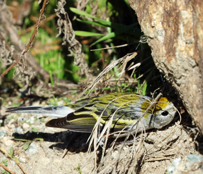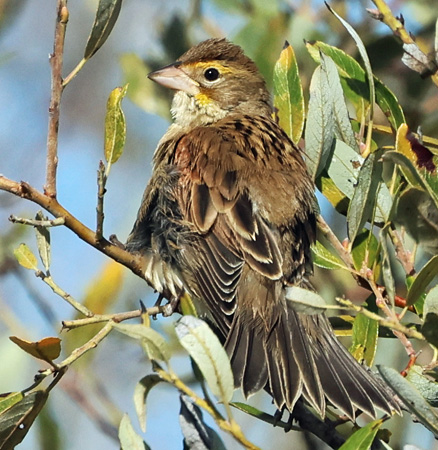 On 30 September, two unexpected birds appeared at Laguna Grande Park in Seaside. A Dickcissel was found by Kai Russel at the "Russian bridge," where it frequented the reeds, bathed in the creek, and then dried out in the sun (ph near right © Don Roberson). We only average one a year.