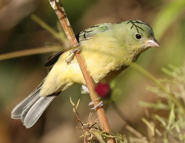 On 30 November, Steve Rovell discovered a hatch-year Painted Bunting in Marina (left, 30 Nov, © Steve Rovell). It was in a front yard that previously had hosted a White-winged Dove some years back. Many local birders successfully chased the rarity that same day, which was lucky because it was not seen thereafter. [Another hatch-year Painted Bunting appeared in late December, see above in the discussion of the CBC.]