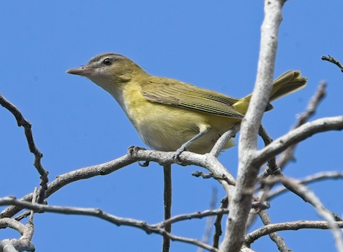 The next vireo of note was Yellow-green Vireo. Three were found during the first two weeks of October: 2-5 Oct at Laguna Grande (found by Paul Fenwick); 4 Oct at Frog Pond (Lucas Corneliussen); and 14 Oct at Point Lobos State Reserve (Tom Clifton). Each was documented with photos, but the most unexpected was the Pt. Lobos bird (below left, © Tom Clifton). In the past, Yellow-green Vireo was discovered occasionally during the fall, and usually with many years passing between occurrences. In contrast, four different Yellow-greens were located in Sep-Oct 2021, and two more in fall 2022. The three this year brings the MTY total to 23 records.
